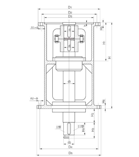 注:1、Ⅰ型為夾殼式聯(lián)軸器聯(lián)接