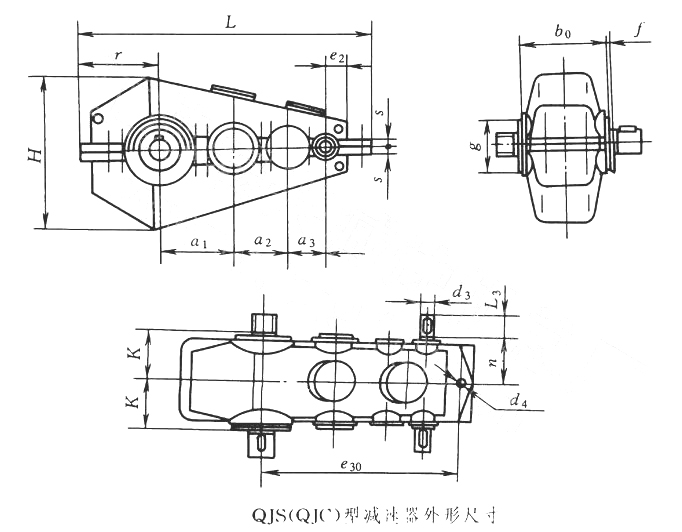 QJS中硬齒面減速機(jī)外形及安裝尺寸