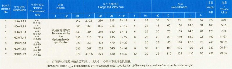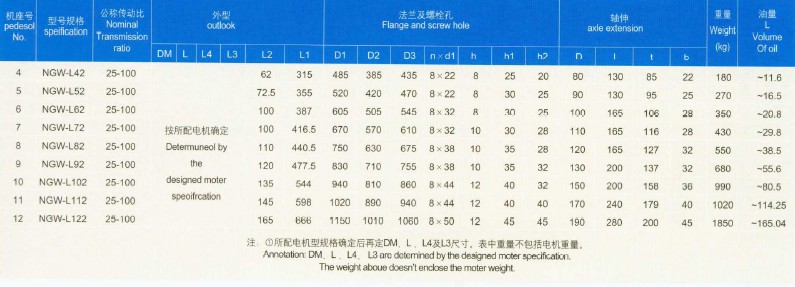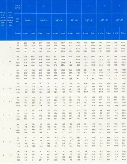 產品由NGW—L型單級L11-L71,兩級L42—L122兩種系列組成,適用于;臺金起重運輸輕化及通用機械設備,適用條件如下: