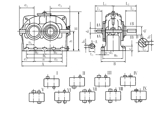 按國家標(biāo)準(zhǔn)JB/T8853-2001生產(chǎn)的外嚙合漸開線斜齒圓柱齒輪減速機(jī)。