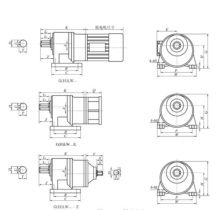 注:箱體材料:L—鋁合金、H—鑄鐵   安裝型式:W—底腳式、F—法蘭式