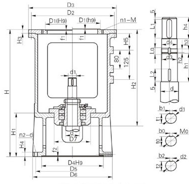 減速機輸出軸徑d0 減速機類別代號 D1 D2 D3 n1-M f1